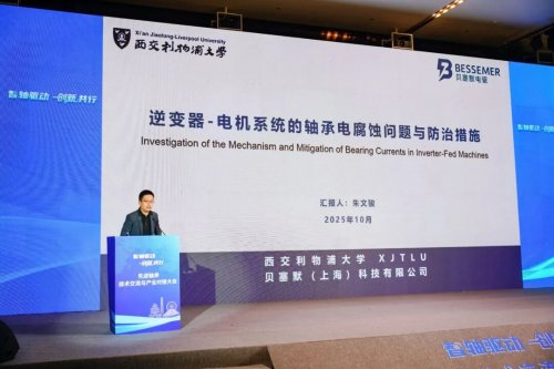 大会技术主题演讲环节,俄罗斯工程院院士、河南科技大学教授、博导,国务院津贴专家叶军首先作《中国轴承产业创新发展路线图》报告,系统描绘轴承技术与产业创新的发展蓝图。随后,西交利物浦大学助理教授、贝塞默(上海)科技有限公司创始人朱文骏聚焦《逆变器-电机系统的轴承电腐蚀问题与防治措施》,提供了风电、电动汽车高端轴承热点技术难题的先进解决方案。