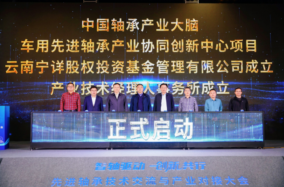 在轴承产业重大项目启动仪式环节,山东省科技厅二级巡视员王洪国,山东国投公司副总经理、山东人才集团副总经理何伟,临清市委书记张志刚,俄罗斯工程院、俄罗斯自然科学院院士,北方工业大学教授朱远志,俄罗斯工程院外籍院士、中国汽车技术研究中心原副总经理吴志新,山东省轴承智能制造创新创业共同体理事长张跃学,洛阳轴承研究所有限公司副总工程师王世锋,云南宁详股权投资基金管理有限公司董事长普显煜八位嘉宾同台启动系列合作项目,共同见证“中国轴承产业大脑”“车用先进轴承产业协同创新中心项目”“云南宁详股权投资基金管理有限公司”“产业技术经理人事务所”项目的正式启动运行。